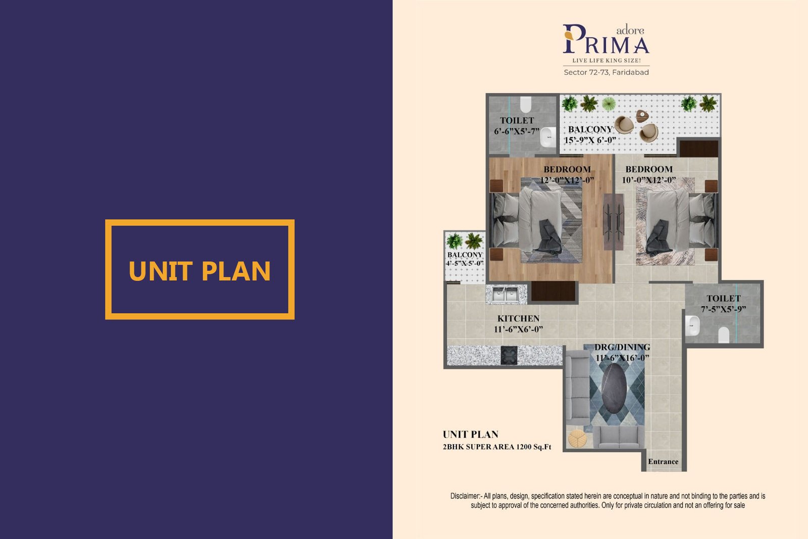 Adore Prima is an Adore housing project in Faridabad's sector 72-73 that offers 2-4 Bhk homes for sale. The main road is 45 metres wide, while the internal roads are 15 and 6 metres wide. These apartments have four sides that are open, allowing for plenty of fresh air. The property is located in a gated community, and all of the flats are corner units with no shared walls, which is another highlight of the development. A huge area of 1200 to 1800 sq. ft. was used to construct the building. The faridabad flat price at Rs 30 lacs as a starting point (All inclusive). Both municipal companies and bore wells/tanks provide water to the flats.